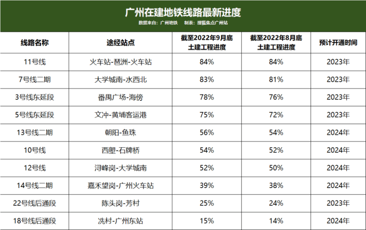 按照计划,明年(2023年)广州或有5条地铁新线开通试运营,备受期待。