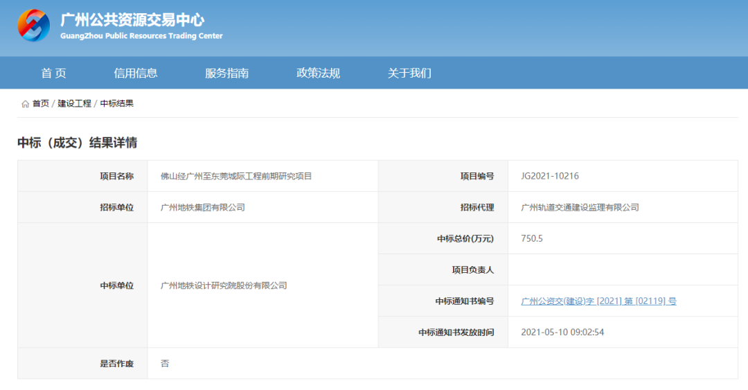 今天,广州公共资源交易中心上公示了关于“佛山经广州至东莞城际(28号线)”的三个中标结果。28号线工程前期研究项目、卫生学预评价项目、安全预评价项目的中标单位都已公布。