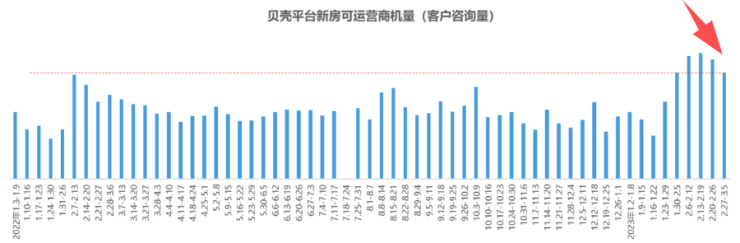 据贝壳研究院广州分院数据显示,3月第一周新房客户咨询量环比下降5%。