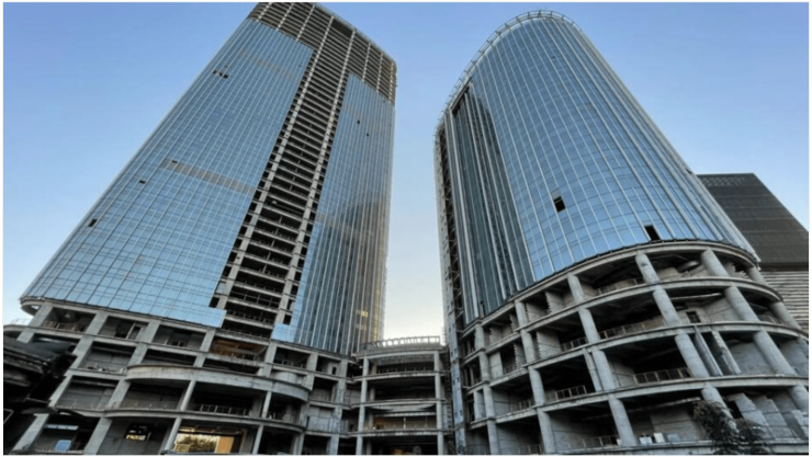 该项目原本规划为广州东部区域的地标建筑,但随后因资金断链,在工程封顶后就烂尾。该地块是富大地产在2009年8月份以1.02亿元的价格竞得KXC-D2-2地块,折合楼面地价仅为57元/平方米,项目最早于2012年7月31日开工建设,拟建造广州松日总部大楼,项目规划高度为195米,当时是要打造成广州东部地区新地标。广州松日总部大楼因资金链断裂已于2018年停工,工程只完成了80%,项目未投入使用,也未销售,目前被人民法院轮候查封。