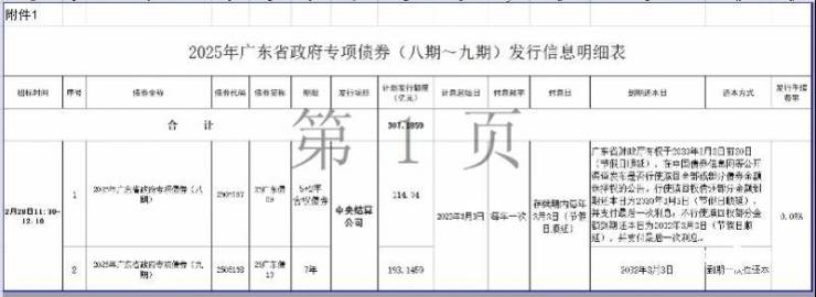 专项债收储土地提速。近日,广东省财政厅发布了关于《2025年广东省政府专项债券(八期~九期)发行有关事项的通知》,计划于2月28日为专项债券(八期~九期)进行竞争性招标。