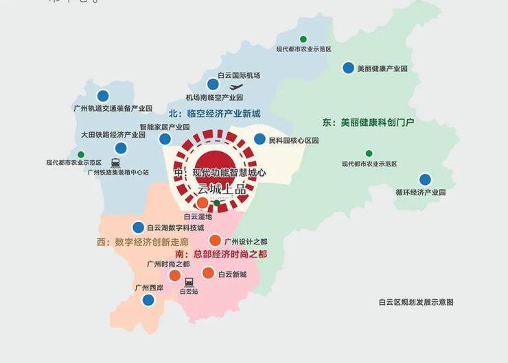 而据白云区早期提出的“1358发展战略”(1个目标、3大枢纽、5大片区、8大产业园),白云城市中心正位于战略中“五片协同、多核驱动”发展格局的中部板块,将建设为集现代商务、文旅休闲等六大主导功能于一体的现代化城市中心。