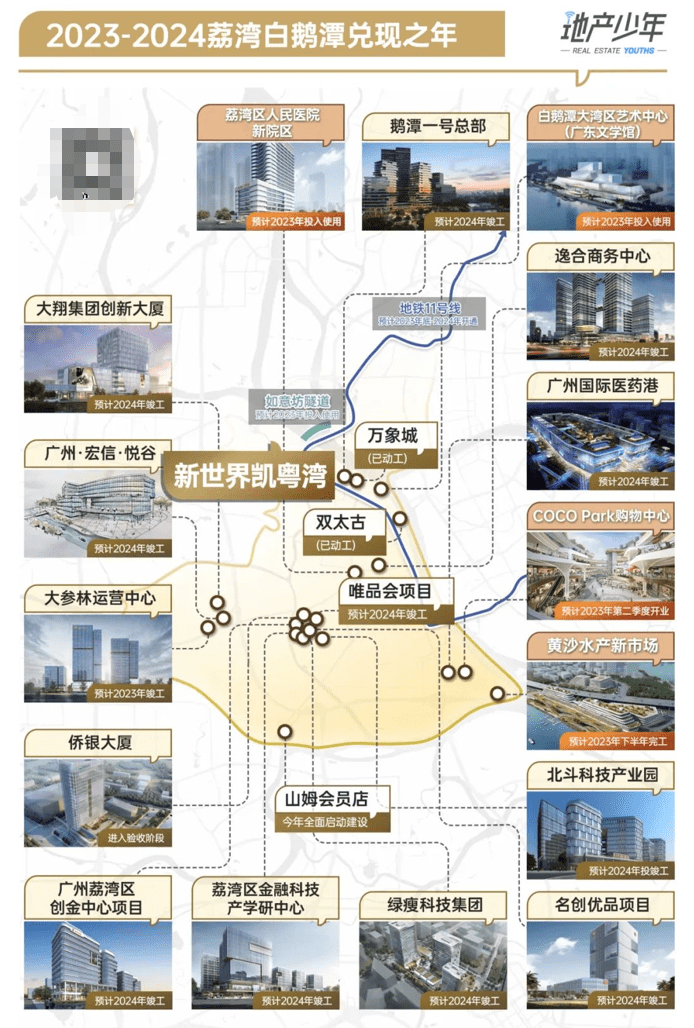 值得一提的是,即将完工的COCO PARK、白鹅潭大湾区艺术中心、地铁11号线和如意坊隧道,都位于白鹅潭黄金江岸。
