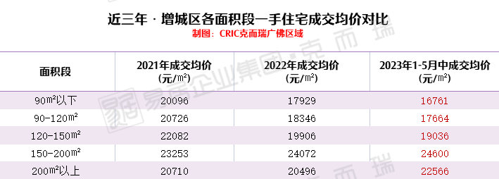 数据显示,增城区90㎡以下面积段一手住宅在楼市相对较火的2021年网签均价突破2万/㎡,如今跌到不足1.7万/㎡。