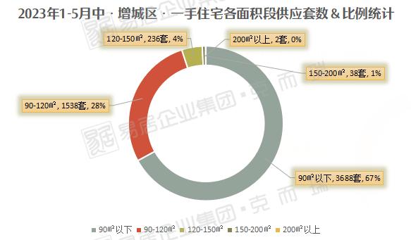 数据显示,今年1-5月中,增城区90㎡及以下面积段一手住宅供应3688套,占总供应的67%.
