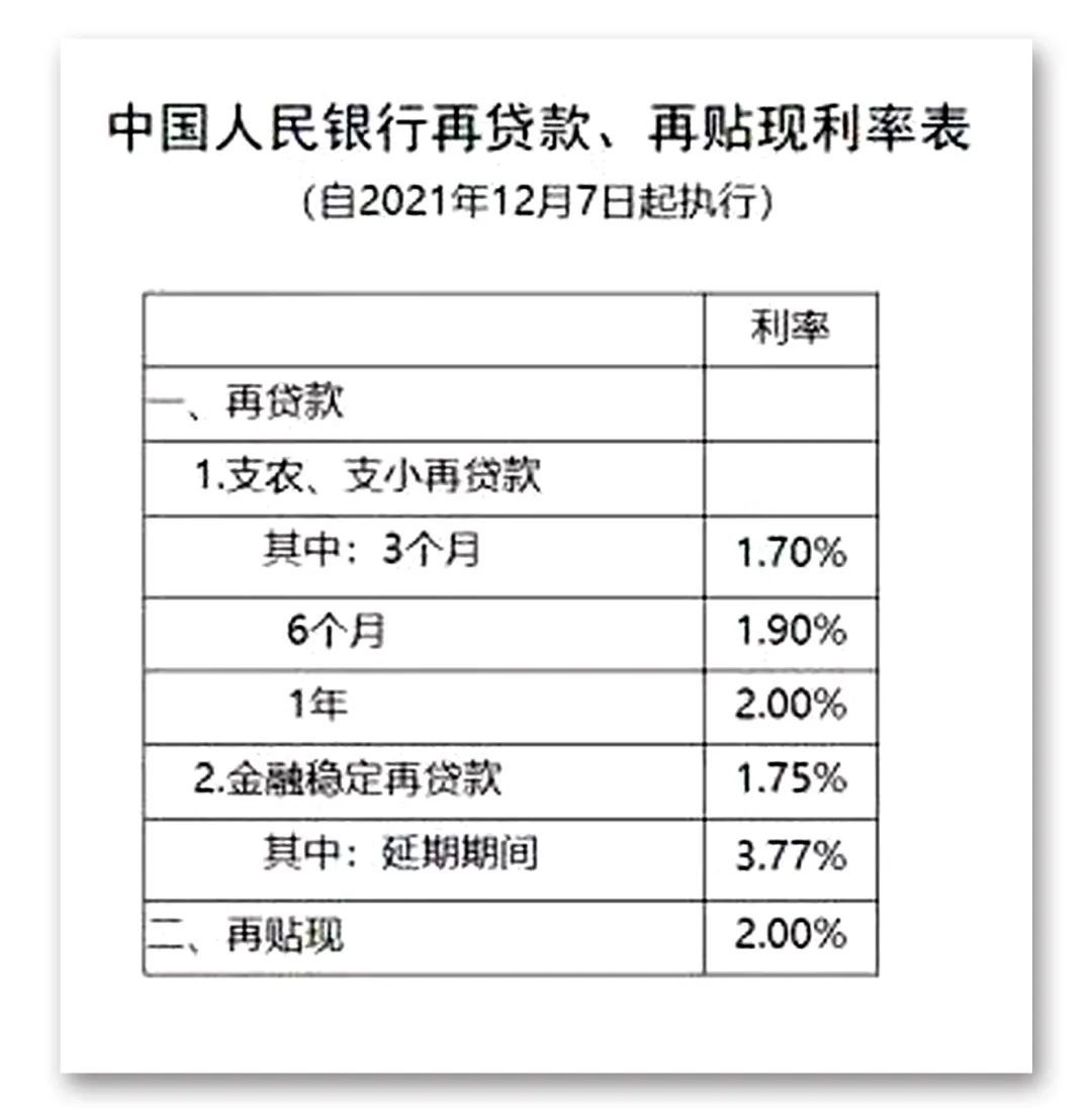 中国人民银行网站公布的再贷款、再贴现利率表显示,自12月7日起,下调支农、支小再贷款3个月、6个月、1年期利率0.25个百分点,分别为1.70%、1.90%、2.00%。