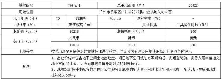 日前,广州开发区规划和自然资源局(广州市规划和自然资源局黄埔区分局)以挂牌方式出让广州市黄埔区JKG-A-1地块的国有建设用地使用权。