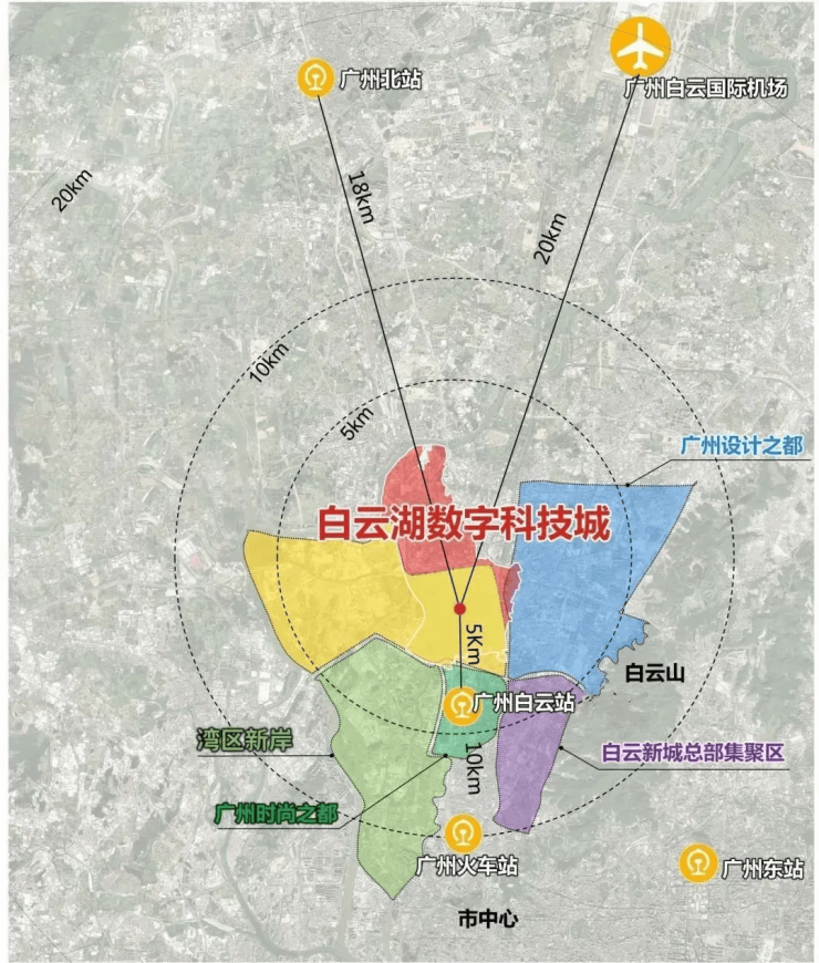 白云湖数字科技城位于广州市中心城区西部,广深港澳科技创新走廊的起点。这一得天独厚的地理位置,使其成为连接广州与佛山、港澳等地的重要枢纽。同时,科技城内的“一心引领、四核驱动、五廊嵌入、一轴联通”的空间结构,为其发展提供了强有力的支撑。