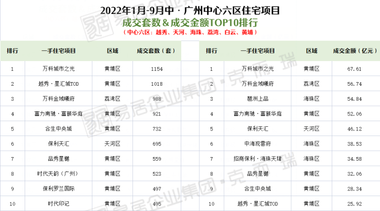 排名第二的万科城市之光以1154套一手住宅成交套数、67.61亿元,排名广州中心六区成交套数及成交金额双料排名前列。