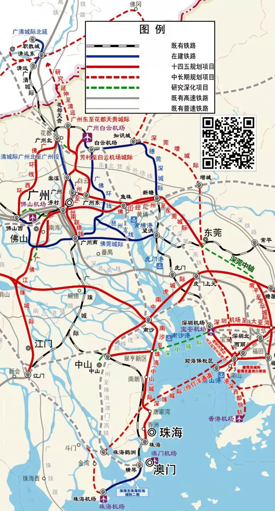 当然,这么长的线,不可能从头开到尾——既耗时,也不经济,大概率将采取复线分段换乘。比如广州-深圳,广州-珠海,佛山-广州,佛山-珠海,等等。