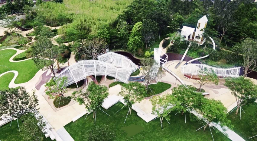 而在项目旁,更有耗资3000万打造的近2万方的大鱼公园,由中国景观设计先锋——张唐景观设计,在云山下,公园旁,让万科未来森林,整体绿地率达到近130%,呼吸每一口空气都是鲜氧。