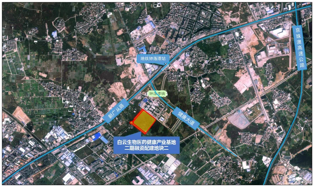 项目建设地点,位于钟落潭镇五龙岗白云生物医药健康产业基地,属于美丽健康产业园内。