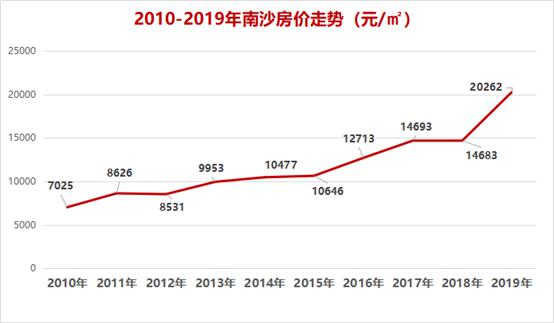 而在楼市方面,2015年-2019年间,南沙新房房价从10464元/㎡上涨至20262元/㎡,涨幅达93.6%!