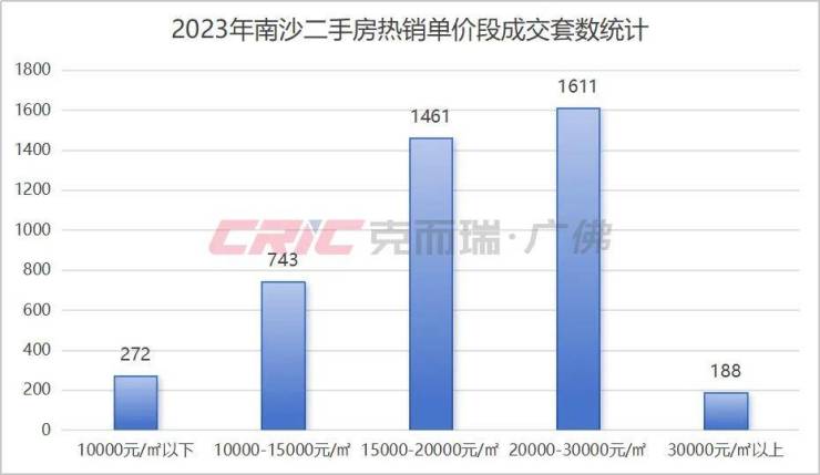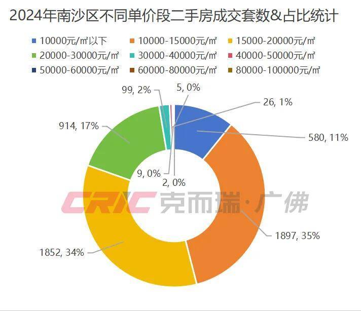 具体到单价段上看,克而瑞数据监测显示,2024年南沙二手房热销单价段在1-1.5万元/㎡,共成交1897套,占比达到了35%,较2023年增长18%。