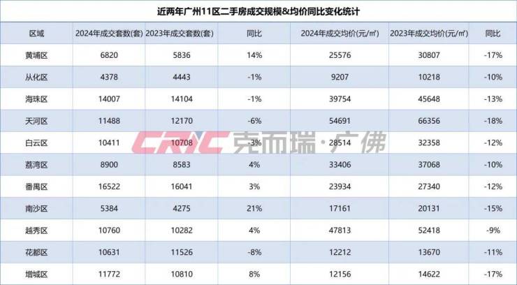 与去年相比,克而瑞数据监测显示,在成交套数维度上,2024年全市有黄埔、南沙两区成交规模同比增长超10%,其中南沙区同比增幅更是达到了21%。