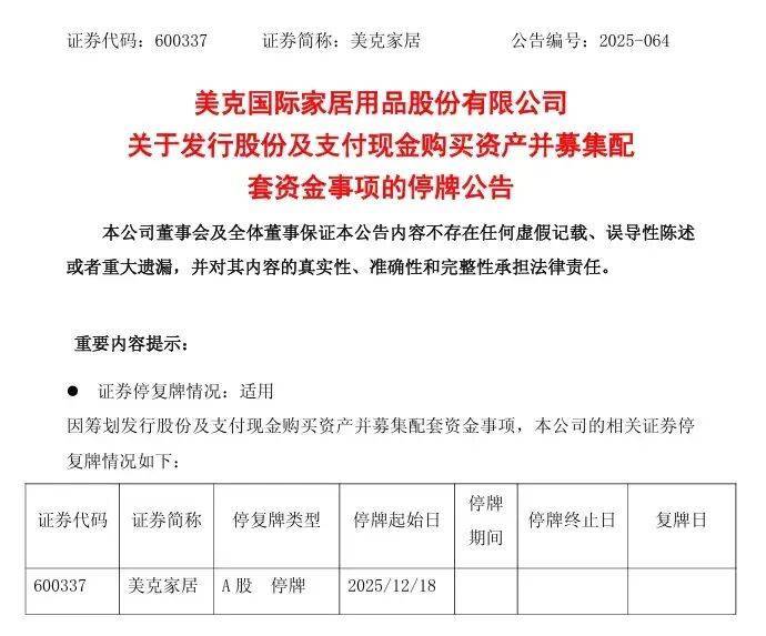 12月17日晚间,美克家居披露关于发行股份及支付现金购买资产并募集配套资金事项的停牌公告称,公告提到公司正在筹划通过发行股份及支付现金的方式收购深圳万德溙光电科技有限公司(以下简称“万德溙”或“标的公司”)控制权,并募集配套资金。