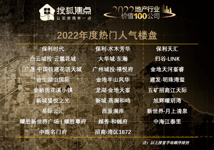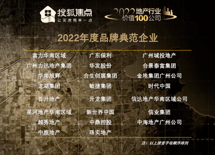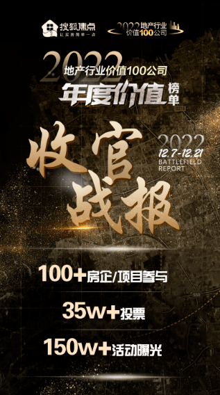 2022年12月22日,由搜狐焦点联合焦点财经、焦点新媒体、焦点研究院共同发起的超级品牌季活动圆满结束,「2022年地产行业价值100公司」 评选结果正式出炉!