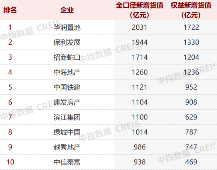 从新增货值来看,前11月华润置地以累计新增货值2031亿元占据榜单第一,保利发展和招商蛇口分别以1944亿元和1714亿元紧随其后。TOP10企业新增货值总额13211亿元,占TOP100企业的36.7%,新增货值门槛为938亿元。