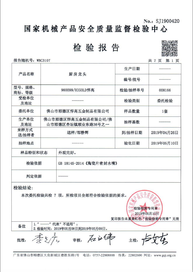 搜狐焦点家居近日获悉,悍高五金旗下厨房抽拉龙头产品(产品型号980099)于2020年初多次接受高级抽查检测,抽查结果均为合格。 悍高980099型号龙头产品检测报告内容 据了解,悍高作为国家高新技术企业以及知名家居五金行业品牌,拥有高级工程技术研究中心和研究院,多次获得德国红点设计大奖、中国厨