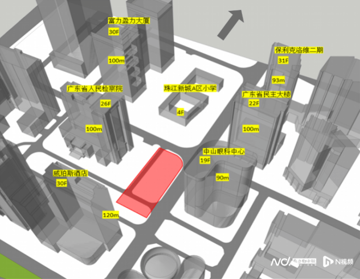 记者梳理发现,该项目用地东侧为中山大学中山眼科中心,南侧为威珀斯酒店,西侧为广东省人民检察院,北侧为广州市天河第一小学(华穗校区)。项目距花城广场仅900米、广州塔仅2.2公里,500米范围内有在建地铁站2座(广州大道中、花城广场北)。
