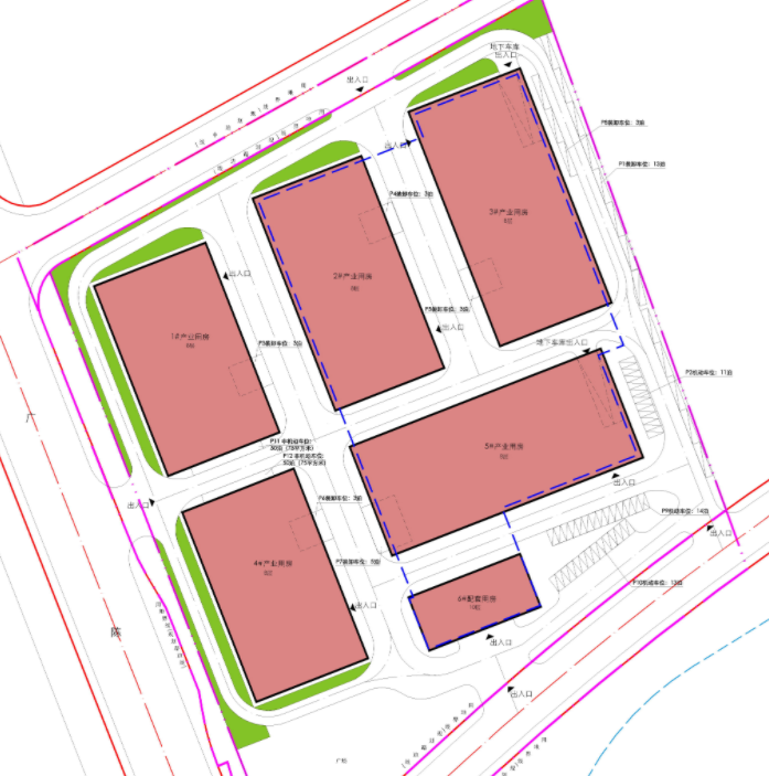 从公布图可见,项目将建设共6栋标准化、规范化用房,包括5栋8层高的产业用房,1栋10层高的配套用房。