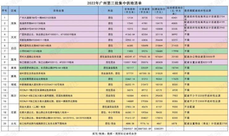 在第三批集中供地清单中,中心六区与外围五区各占10宗地。其中有7宗落地中心四区,海珠3宗,天河荔湾各2宗;还有白云2宗,黄埔1宗,当中6宗地的楼面地价都超3万。