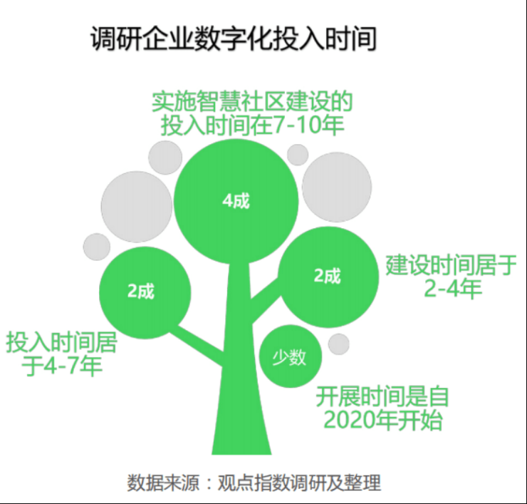 作为社区管理新理念与新科技的结合,目前地产行业内已经广泛认可打造智慧社区,90% 的受访房企及物业企业已经布局物联网、云平台、移动端等新一代信息技术的建设。智慧社区已经成为开发商与物业企业的“必修课”。