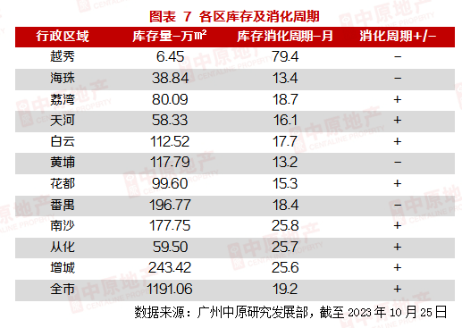库存方面,增城区以243.42万㎡的库存量位居全市第一,并以25.6个月的消化周期位居全市第三。