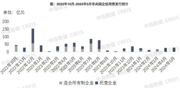 2022年10月-2024年5月非央国企信用债发行统计 图源:中指研究院