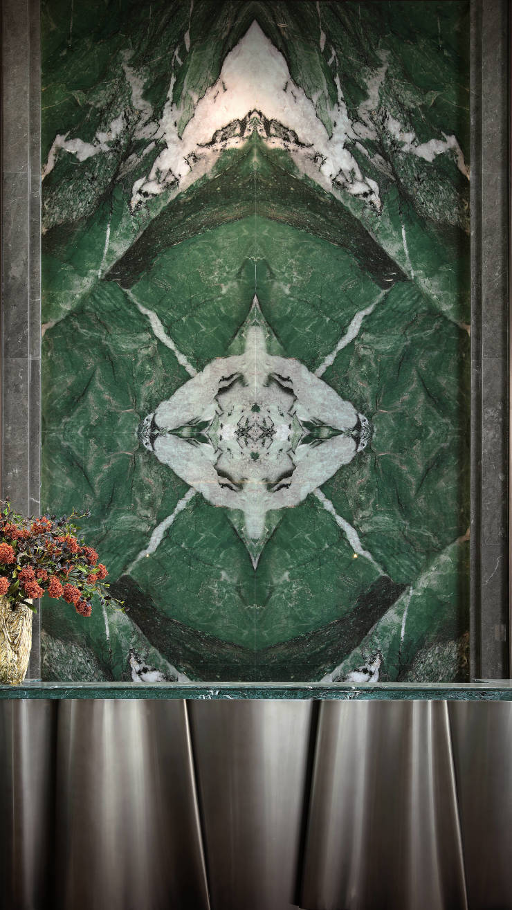 在工艺品质精琢上,眼前这块翡翠岩板竟然是走了超10万公里、探访超20家国际顶奢酒店、耗资数百万才找寻到的至美色彩奢石,足以见其精奢。