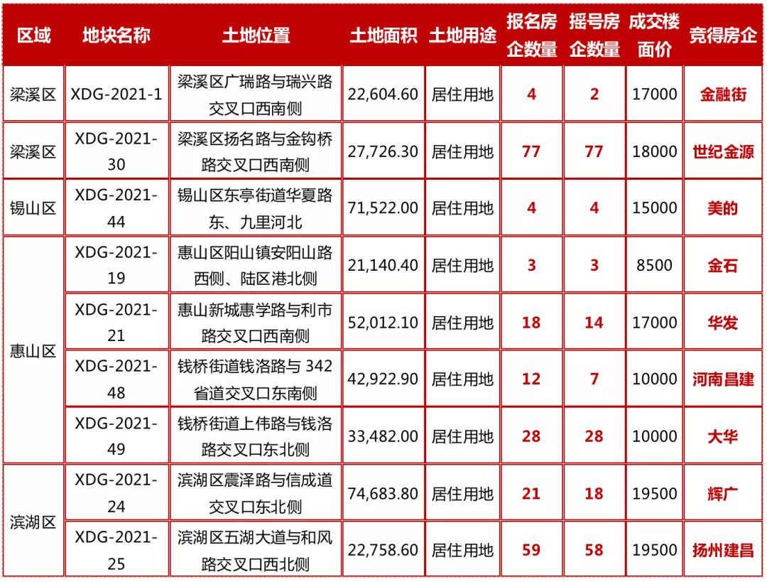 关于摇号:“摇号+溢价率控制在15%以内”利好于中小房企,可大大提高中小房企在二批次土拍中的参与力度,或者通过联合竞拍的方式参与土地竞拍中,加大获取土地的可能。通过摇号等规则拿地,在一定程度上促进市场的公平、公正,同时有效抑制房企盲目拿地现象。以无锡为例:“限地价+摇号+限马甲”,中小企业有更多的拿地机会在前段时间刚刚结束的无锡二批次集中供地中,有9块地进入摇号阶段,其中梁溪区XDG-2021-30号地块,共吸引了77家房企报名,竞争十分激烈。最终第二批成功出让的22宗地块中,只有3宗竞得人为头部房企,其余均被中小房企及国央企竞得,这无疑是利好于中小房企。