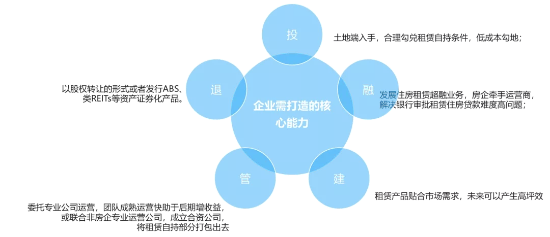 “竞自持、竞配建“为主的租赁用地拿地方式,对于重资产模式的开发商而言,主要考验的是企业打造的投融监管退的生态闭环能力。不仅要有强大的低成本融资能力,还必须有持有物业的运营管理能力,未来,也将面临资产证券化的考验。