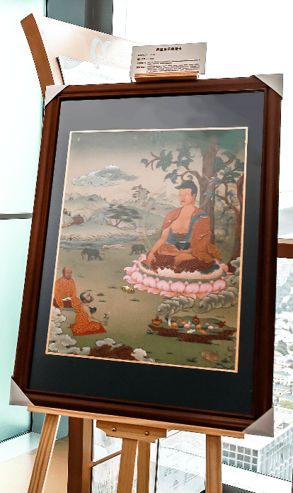 本次展出的唐卡作品来自海拔四千多米的雪山脚下、由敏捷集团捐资援建的四川省德格佐钦琉璃光省级现代藏医学校民族唐卡班师生们的精心绘制。