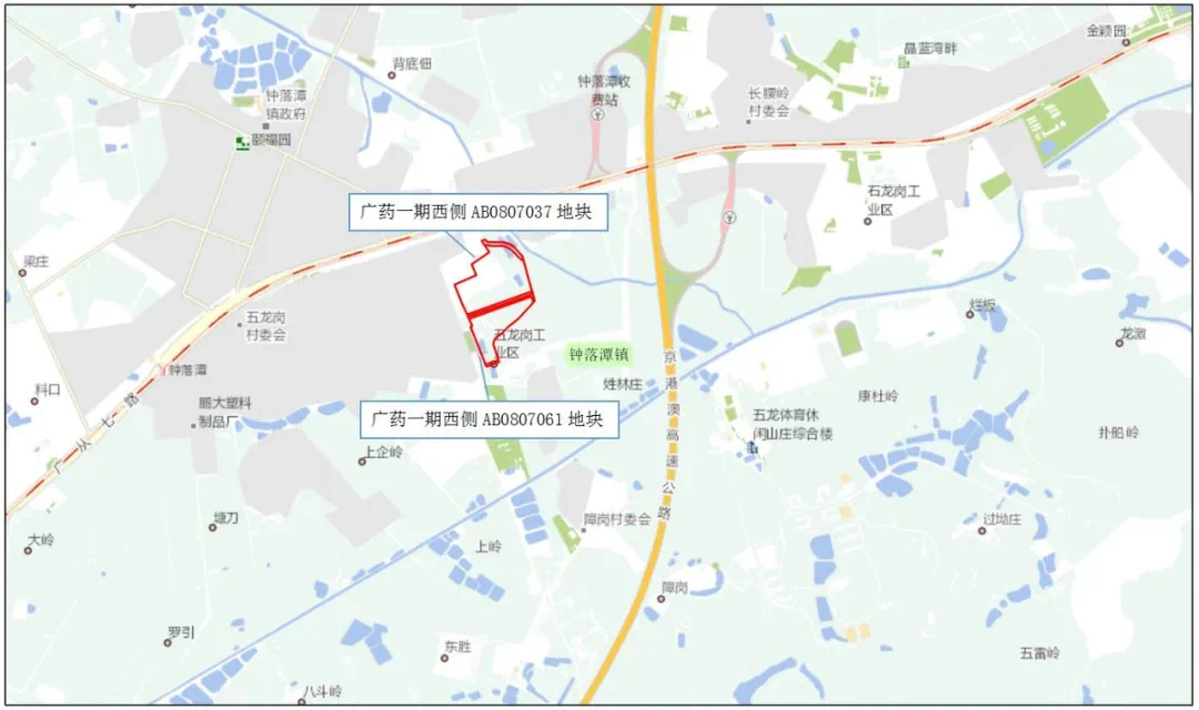 ●白云区钟落潭镇广药一期西侧地块AB0807037地块、AB0807061地块。