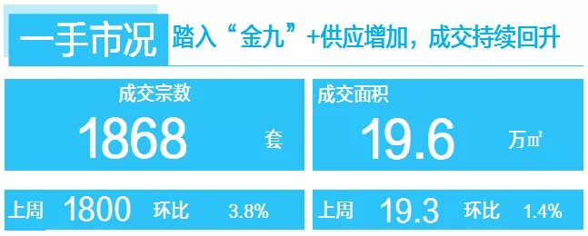 本周全市一手住宅网签1868宗,环比上升3.8%。得益于8月中旬以来供应量大幅回升,开发商经历备案价磨合期后,进行一定程度促销吸客,近2周成交摆脱此前7-8月不足1500宗/周低位。