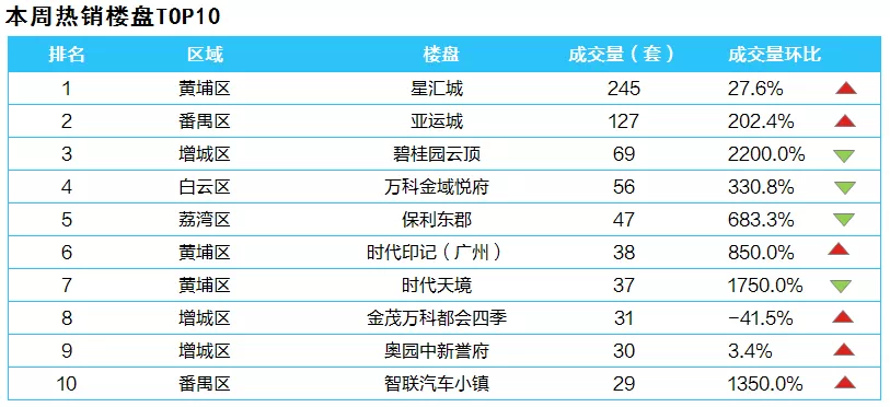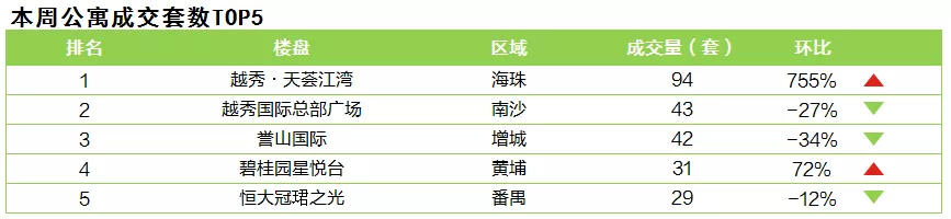 南沙区则保持80套的不俗成交,交易主要来自越秀国际总部广场,项目新一期公寓产品持续热售,本周成交43套。