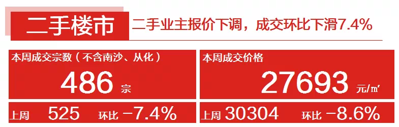 本周二手住宅共成交486宗,环比下跌7.4%。受指导价调控影响,广州二手楼市进一步“转冷”,部分购房客户认为后市价格将短暂进入下行通道。因此,部分客户担心现时入市会导致“高位站岗”,选择观望后市再决定是否入市。