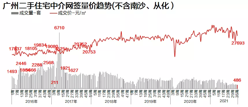 此外,广州首批二手实行指导价楼盘于8月30日公布,预计对二手市场短期将会产生一定“震荡”,部分二手需求将转投一手,在此情况带动下,预计9月中下旬成交或有望冲上2000宗/周大关。