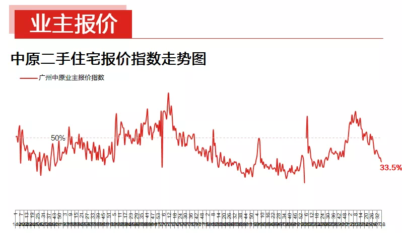 本周业主报价指数为33.5%,环比下降2.8%,指数已经连续5周出现下滑情况。目前市场成交活跃较低,客户入市缓慢,业主市场信心较弱。