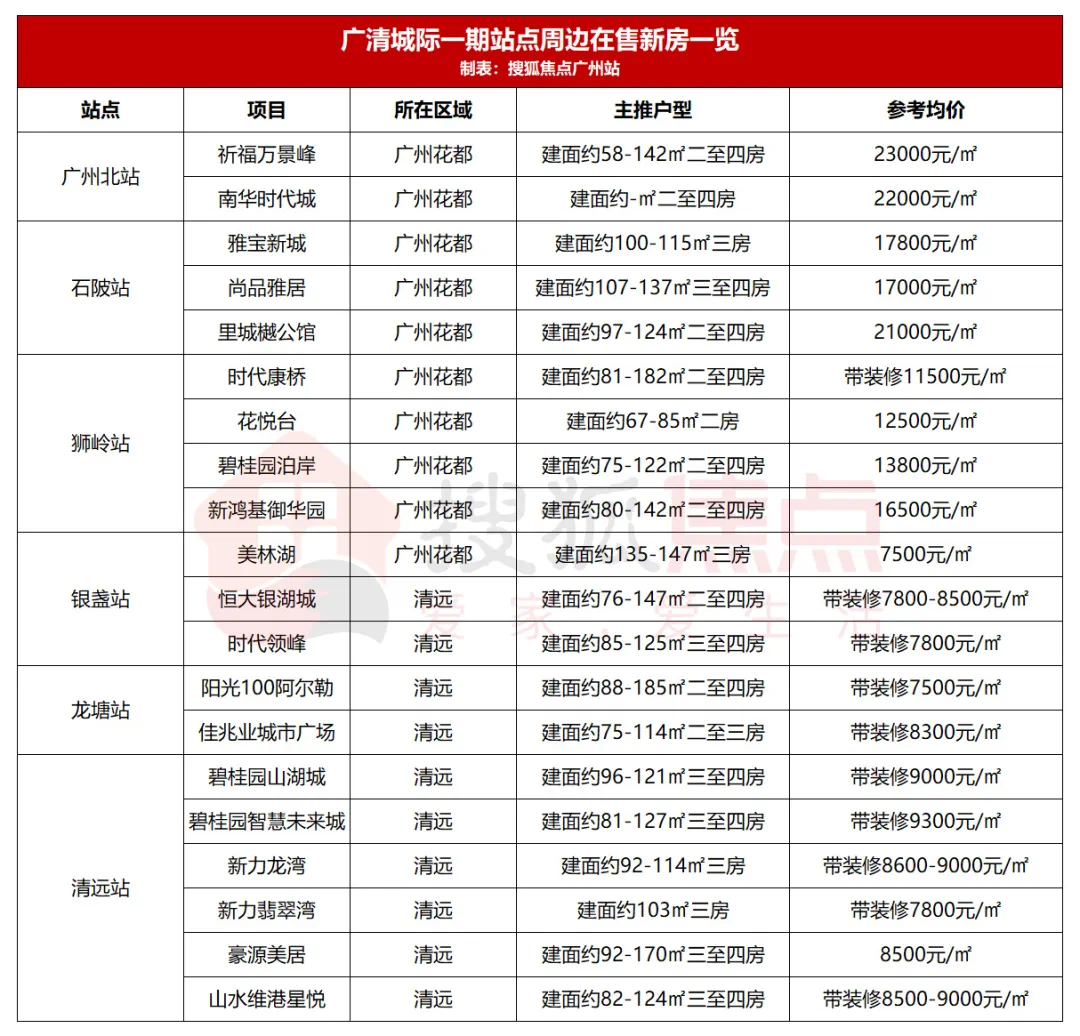 为此,据血拼哥不完全统计,广清城轨一期六个站点周边共20盘可享受城际轨道带来的交通利好。