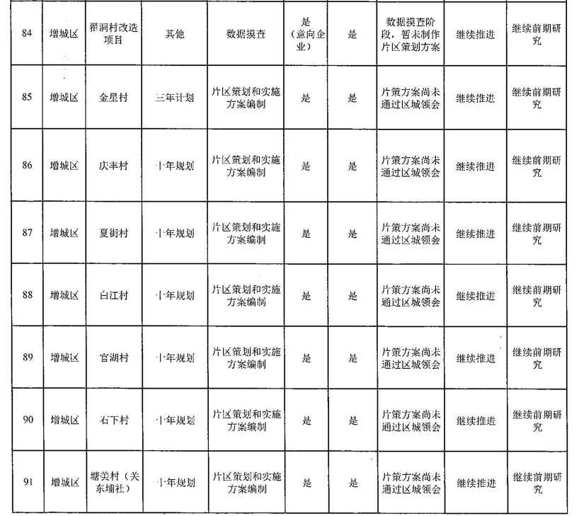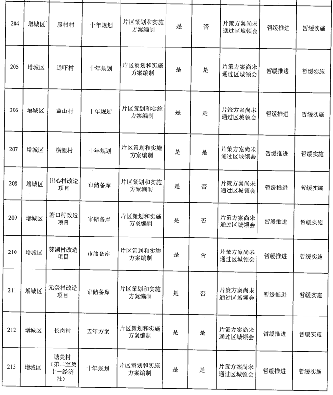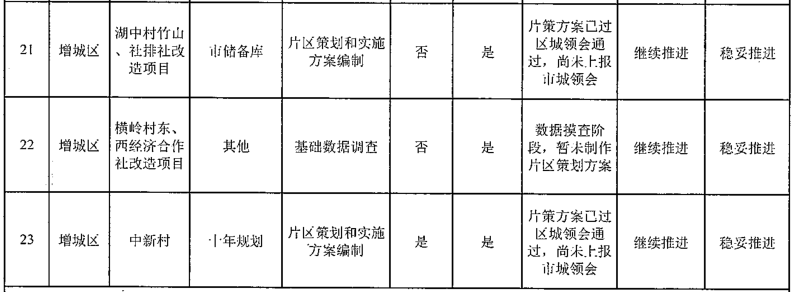 增城有3个稳妥推进项目,分别是湖中村竹山、社排社改造项目;横岭村东、西经济合作社改造项目;中新村。