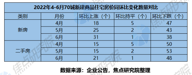 新房和二手房价格上涨的城市个数持续增加。国家统计局数据显示2022年6月70个大中城市,新建商品住宅价格环比上涨城市数量为31个,较5月增加6个;环比下降城市数量为38个,较5月减少5个。二手住宅方面,2022年6月环比上涨的城市有21个,较上月增长6个;环比下降的城市有48个,较5月减少了5个。新建商品住宅和二手住宅价格上涨个数连续两个月上涨,下跌个数持续减少,商品住宅价格开始回暖。