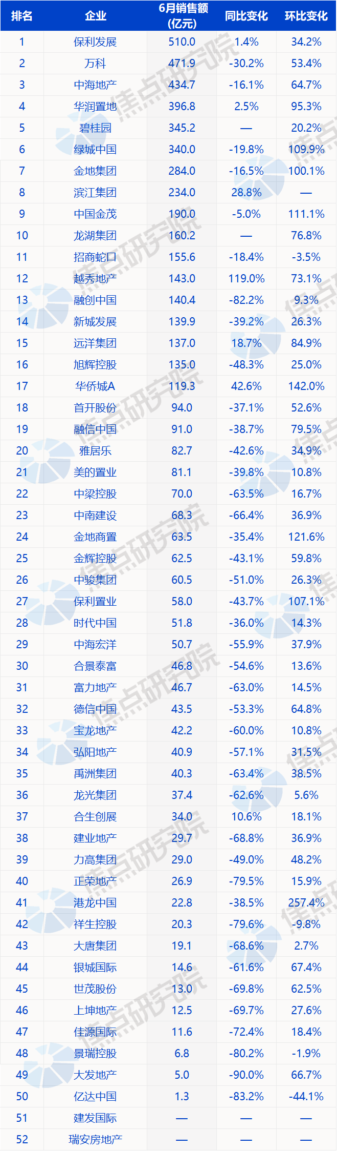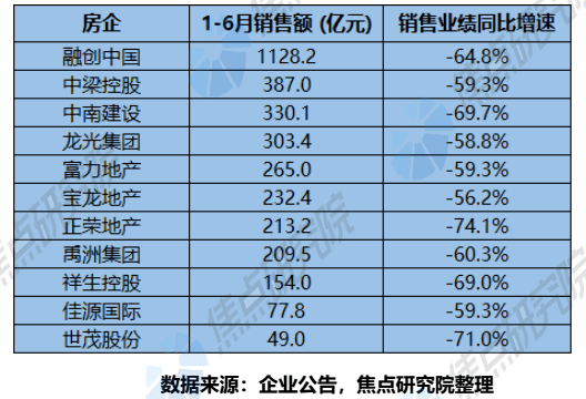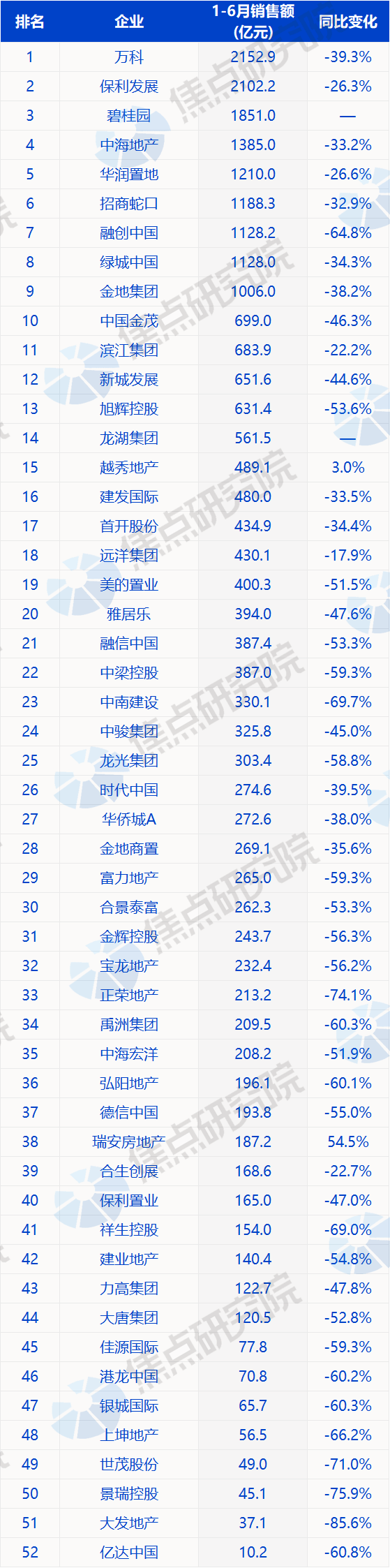 三、1-6月房企销售情况:9家销售额过千亿,规模房企销售更具韧性