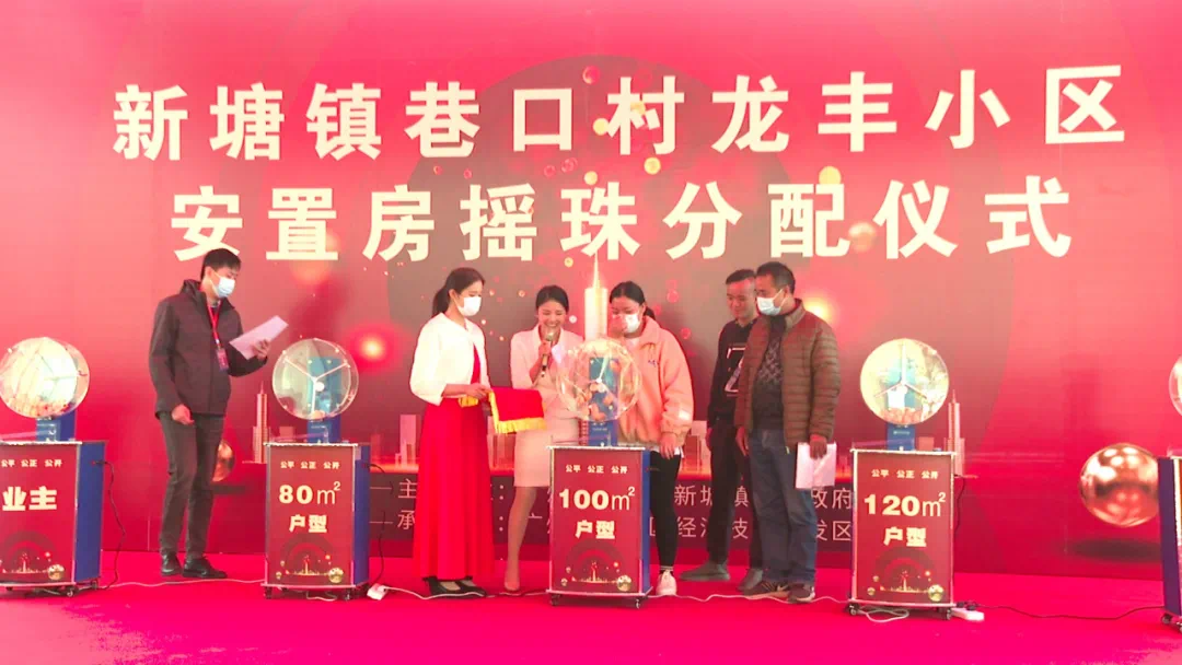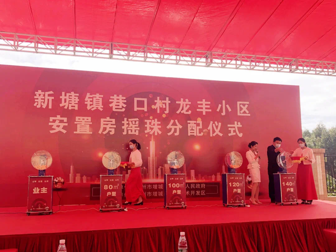 近日,新塘镇举行巷口村龙丰小区安置房摇珠分配仪式。