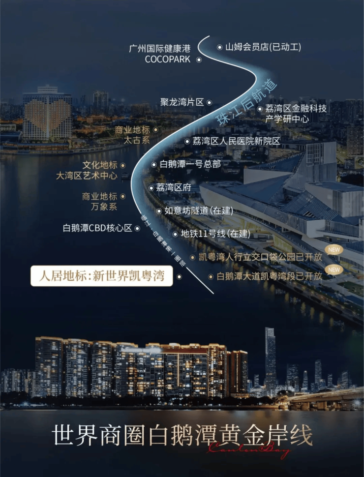 新世界凯粤湾,位于白鹅潭黄金生活圈C位,坐拥世界级商圈带来的顶级资源,是繁华与格调的汇聚点。这里,经济、商业、文化地标齐聚,逼格满满!