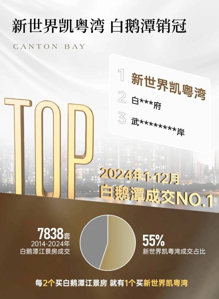 60秒狂销3个亿、双十二单天出货全城第一……2024年白鹅潭网红大盘新世界凯粤湾,一次又一次燃炸了广州楼市!成绩便是实力!2024年,新世界凯粤湾再一次稳坐白鹅潭江景房销量的头把交椅,更连续多年在荔湾、在白鹅潭江景盘中占据着无可争议的统治地位!