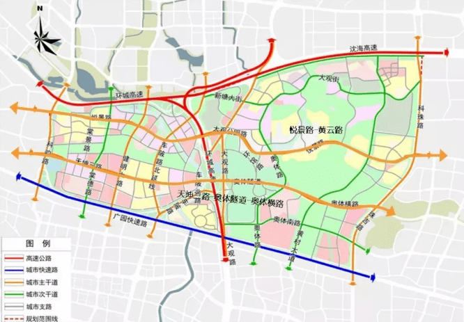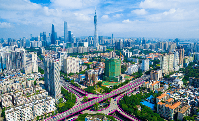 在高快速路方面已基本建成“三横两纵”(“三横”:广园快速、环城高速、广汕快速;“两纵”:华南快速、机场二高)的高快速路网,未来将加快华观路、科韵路快速化改造等一批项目建设。