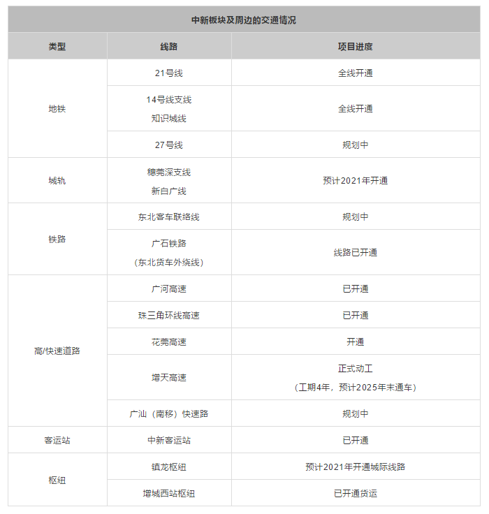 再加上,中新还享受着广州东进的红利,除了21号线以外、这里未来还汇集着3地铁+1城轨+2铁路+5高速+1客运站+2枢纽,交通便捷的利好相信不必多说,这些都是能带动整体片区经济的黄金通道。