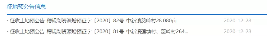 二、拟征收土地的位置和范围:中新镇莲塘村、慈岭村(详见现场公告附图)。