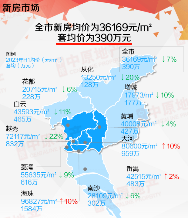 寸土寸金的越秀不仅缺货,新盘动不动就喊价10w+,上半年的成交套均价为832万元。